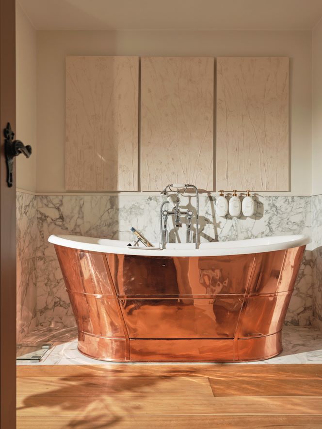 The bespoke, copper roll-top bathtubs take luxury to new heights. Your bathrooms are wonderfully spacious, filled with natural light and fragranced with the subtle aroma of Wildsmith toiletries.