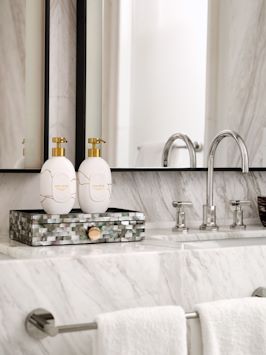 Dressed in the finest marble, the Marina Room bathrooms are designed to be everything you need. Whether to relax, to rejuvenate or simply take a moment for yourself, these bathrooms are perfect.
