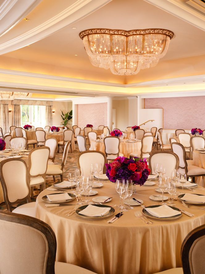 The traditional elegance of our impressive ballroom leads the eye through to its charming terrace, overlooking the pool. This versatile room can be divided into three separate spaces.