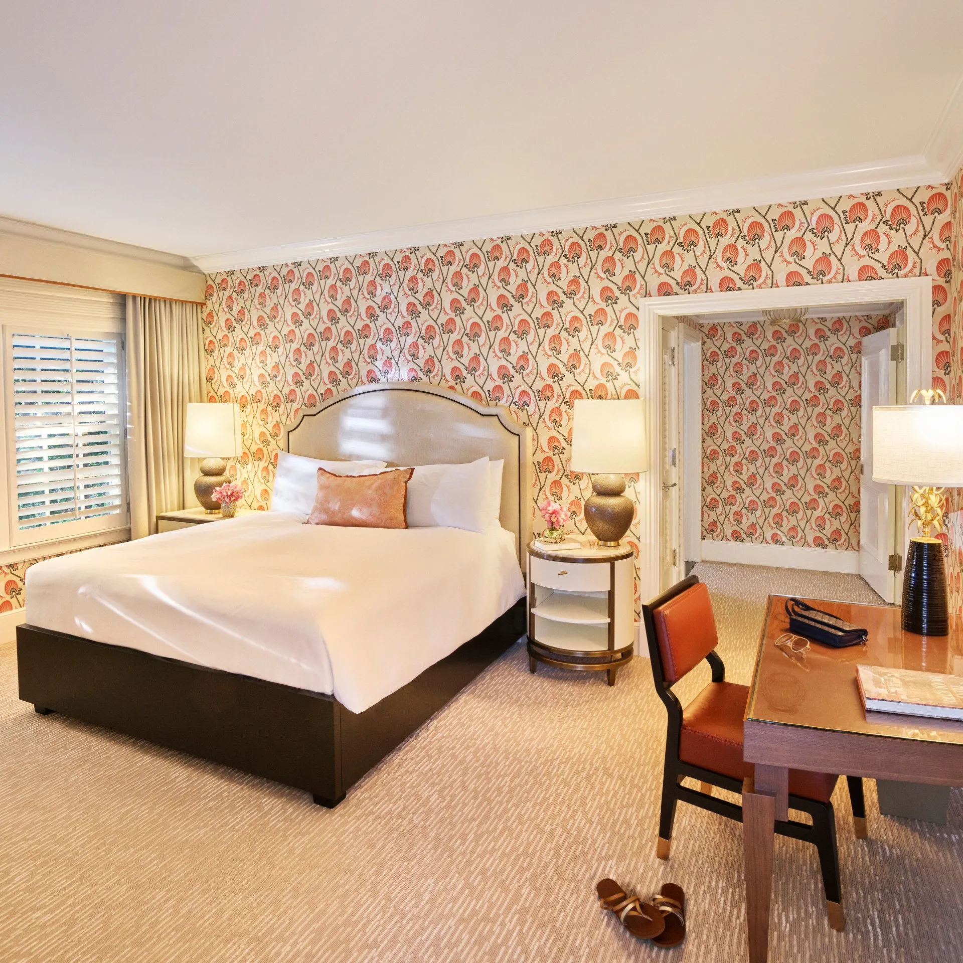 Our iconic bungalow room with a private patio, surrounded by the timeless, tranquil gardens. Bathed in soft colours and the glow of history, this is a place to immerse yourself in vintage glamour and modern luxury.