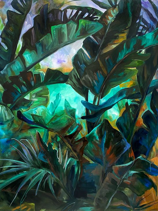 Where Memory Forgets by Virginia Broersma explores the concept of leisure with a nod to Southern California, with lush oil paintings that evoke the sun-kissed colours of the Californian aesthetic.